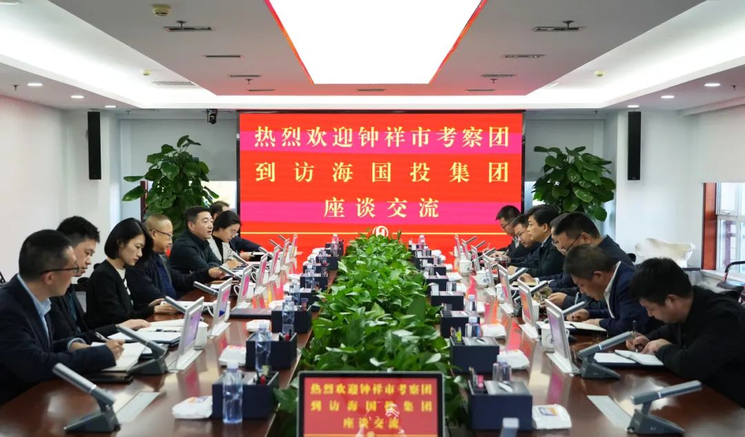 2023年11月6日下午,鐘祥市市委書(shū)記周軍,鐘祥市副市長(zhǎng)劉濤,鐘祥市胡集經(jīng)濟(jì)技術(shù)開(kāi)發(fā)區(qū)主任、胡集鎮(zhèn)黨委書(shū)記胡濤等一行到訪海國(guó)投集團(tuán)座談交流,集團(tuán)黨委書(shū)記、董事長(zhǎng)張國(guó)斌,黨委副書(shū)記、總經(jīng)理于志偉,副總經(jīng)理肖琳娜,相關(guān)業(yè)務(wù)部門(mén)及下屬企業(yè)負(fù)責(zé)人參加座談。