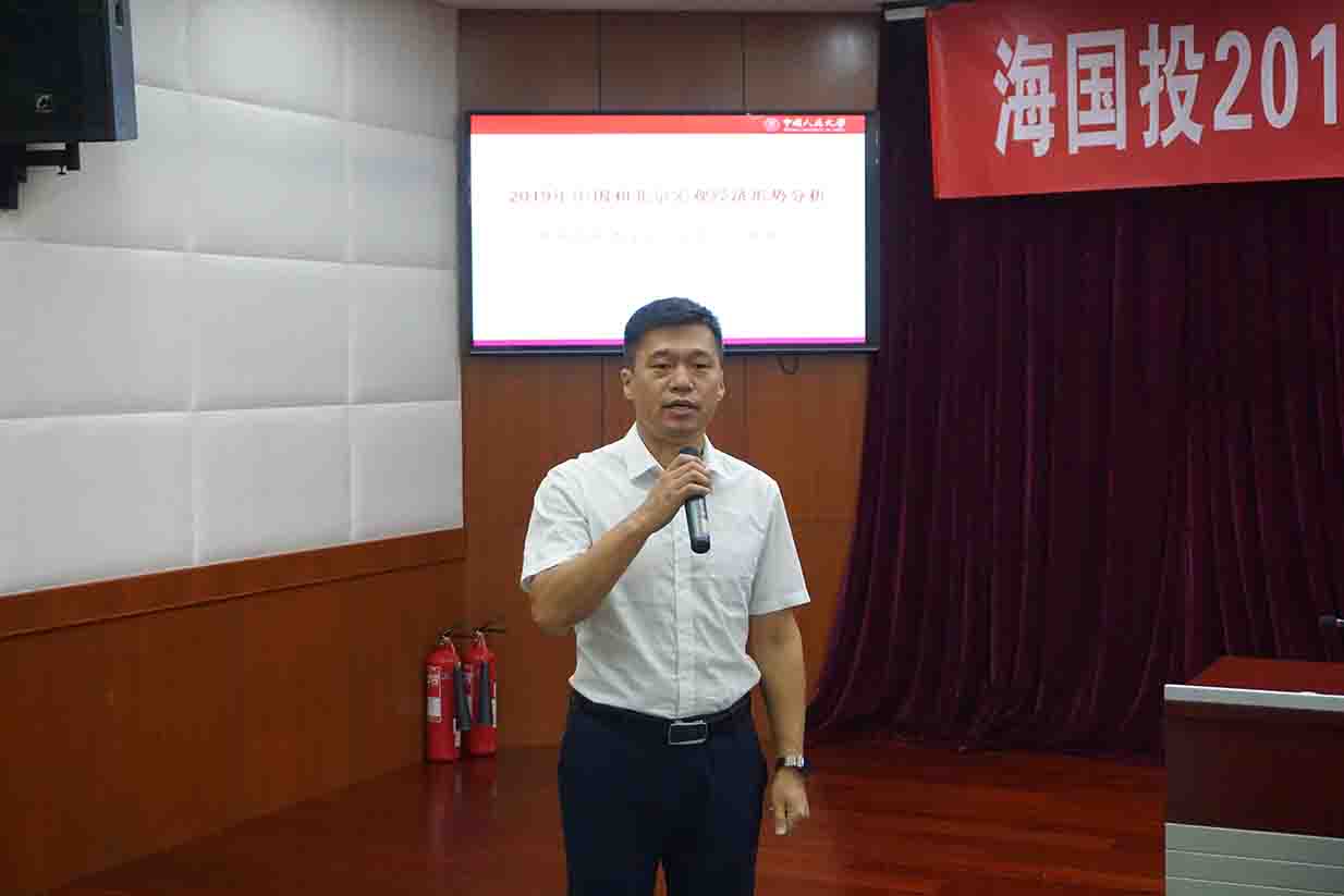 根據(jù)公司“不忘初心、牢記使命”主題教育活動安排,為幫助企業(yè)領(lǐng)導(dǎo)干部更準(zhǔn)確地把握2019年中國宏觀經(jīng)濟(jì)形勢下金融環(huán)境變化及未來發(fā)展趨勢,海國投公司于9月29日上午在鑫泰大廈一層小報告廳舉辦2019年中國宏觀經(jīng)濟(jì)形勢分析專題培訓(xùn)。來自集團(tuán)總部中高層領(lǐng)導(dǎo)、14家下屬企業(yè)的高管人員及海淀區(qū)委組織部、統(tǒng)戰(zhàn)部、教委、財政局等8個單位的相關(guān)領(lǐng)導(dǎo)共110余人參訓(xùn)。海國投公司總經(jīng)理劉洋主持培訓(xùn)。