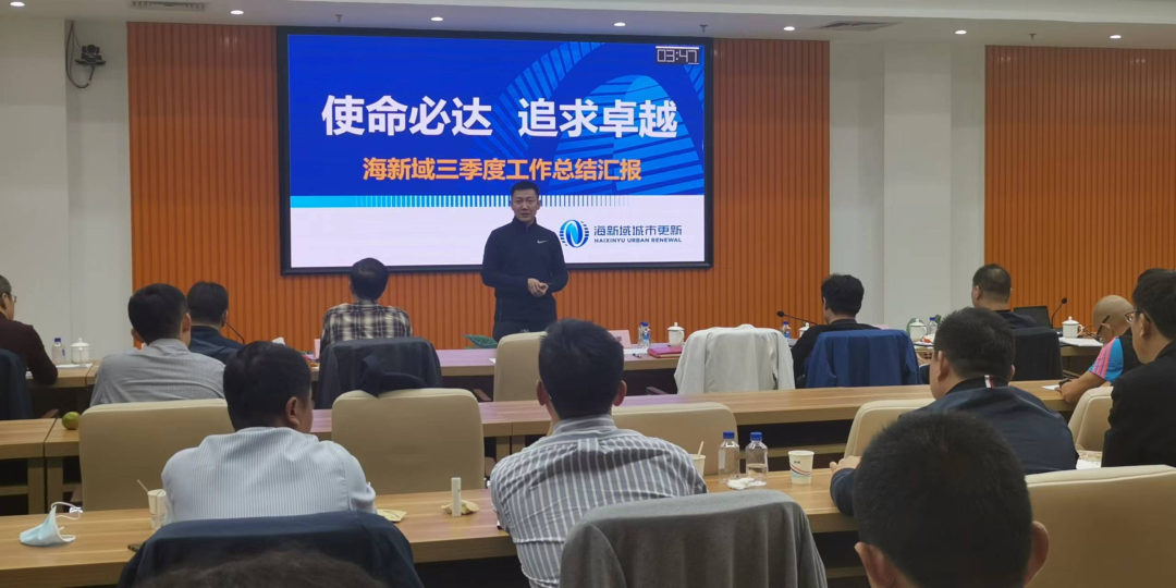 近日,海新域城市更新集團總經理張攀攜全體員工在旗下海星醫(yī)藥創(chuàng)新園C區(qū)(原中關村醫(yī)學轉化中心)召開第三季度工作總結會。海國投集團經營管理部經理祝賀參加會議。