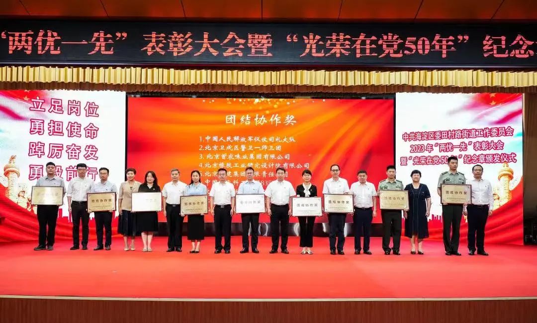 砥礪初心擔(dān)使命,踔厲奮發(fā)勇作為。在中國(guó)共產(chǎn)黨成立102周年之際,6月28日上午,田村路街道隆重舉行“迎七一 樹(shù)典型 學(xué)先進(jìn)”2023年“兩優(yōu)一先”表彰大會(huì)暨“光榮在黨50年”紀(jì)念章頒發(fā)儀式。海淀區(qū)政協(xié)副主席、田村路地區(qū)黨建工作協(xié)調(diào)委員會(huì)主任李偉,區(qū)委組織部副部長(zhǎng)孔磊,區(qū)委宣傳部副部長(zhǎng)刁偉梅,田村路街道及各基層黨組織、地區(qū)單位代表等參加活動(dòng)。會(huì)上,北京龍徽國(guó)際酒文化創(chuàng)意產(chǎn)業(yè)有限公司作為地區(qū)黨建工作協(xié)調(diào)委員會(huì)成員單位代表,受邀上臺(tái)榮獲了團(tuán)結(jié)協(xié)作獎(jiǎng)獎(jiǎng)牌。