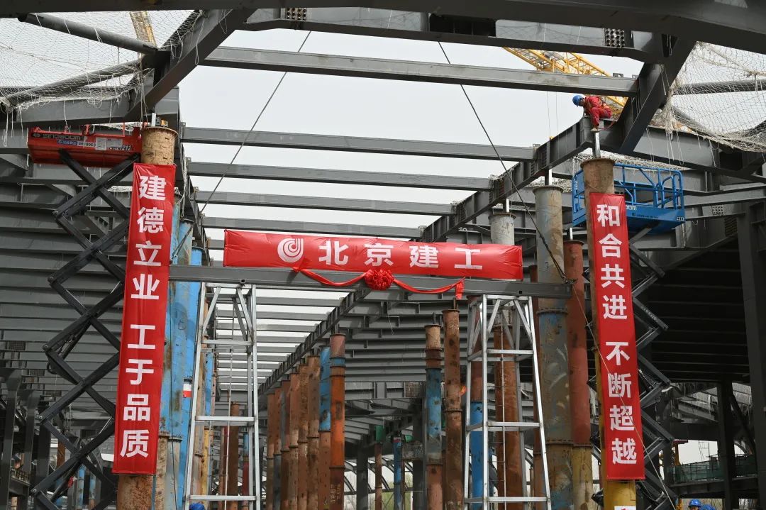 3月22日上午,中關(guān)村論壇永久會(huì)址工程施工現(xiàn)場再次傳來捷報(bào),隨著最后一根結(jié)構(gòu)鋼梁穩(wěn)穩(wěn)升空,吊裝就位,這座備受關(guān)注的首都“科技會(huì)客廳”如期實(shí)現(xiàn)主體結(jié)構(gòu)封頂,向著8月底工程整體竣工交付的節(jié)點(diǎn)目標(biāo)邁出了關(guān)鍵一步。