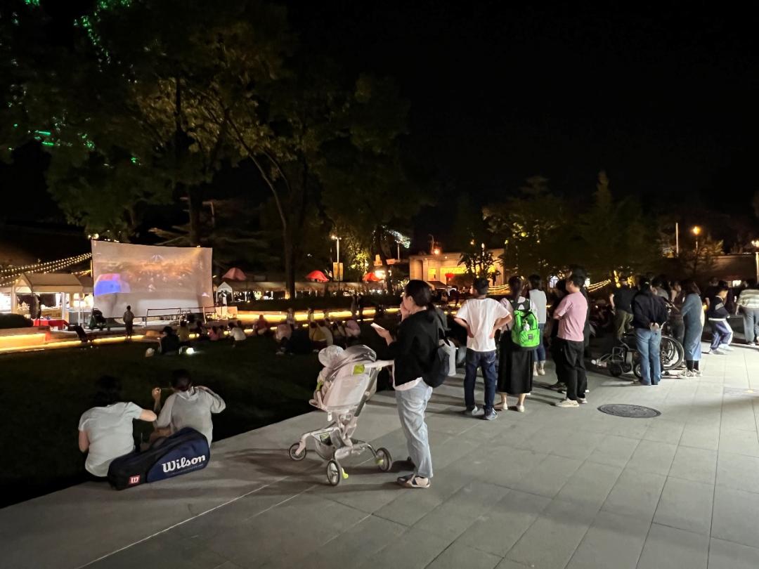 晚風(fēng)輕拂,皓月當(dāng)空。隨著夜幕降臨,在龍徽1910文化創(chuàng)意產(chǎn)業(yè)園露天公益電影放映現(xiàn)場(chǎng),人頭攢動(dòng),熱鬧非凡。附近居民扶老攜幼,或坐或站,背頂星光,悠閑地圍在放映機(jī)周圍,一邊享受著習(xí)習(xí)秋風(fēng),一邊全神貫注地盯著銀屏布幕,共同欣賞著經(jīng)典大片帶來(lái)的震撼與歡樂(lè)。