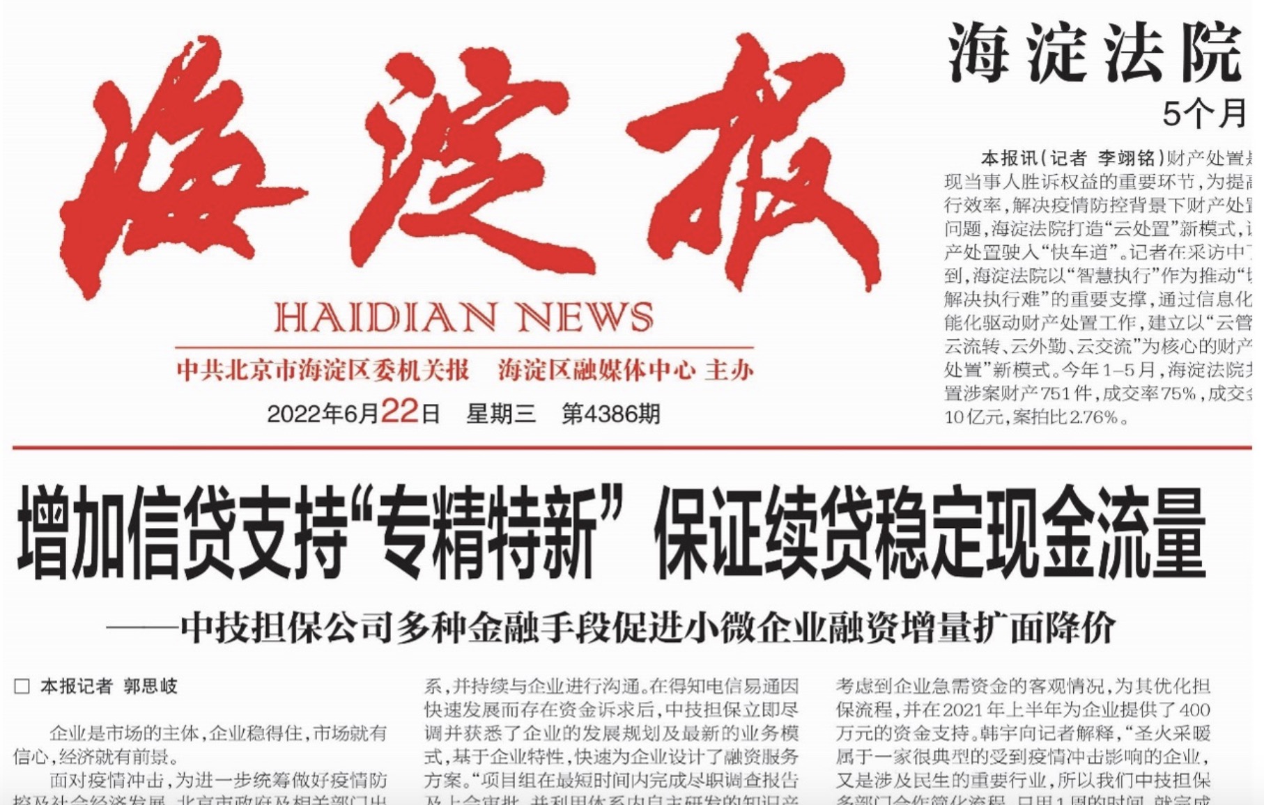 面對疫情沖擊,為進一步統(tǒng)籌做好疫情防控及社會經濟發(fā)展,北京市政府及相關部門出臺了一系列為中小微企業(yè)紓困的相關政策,以切實減輕疫情對中小微企業(yè)生產經營的影響。海國投集團旗下北京中技知識產權融資擔保有限公司(以下簡稱“中技擔?!保┓e極響應各項政策號召,充分發(fā)揮政府性融資擔保機構公共服務職能,切實履行國有企業(yè)社會責任,全力幫助中小微企業(yè)渡過難關,為企業(yè)注入發(fā)展活力。