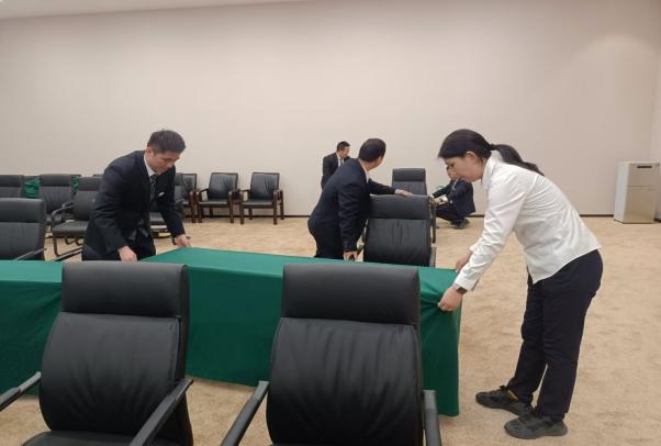 接到此次會(huì)議服務(wù)保障任務(wù),物業(yè)公司領(lǐng)導(dǎo)高度重視,參加園區(qū)會(huì)前工作溝通會(huì),全面協(xié)助落實(shí)會(huì)場(chǎng)布置。項(xiàng)目部根據(jù)會(huì)議保障服務(wù)相關(guān)要求,多次召開碰頭會(huì),落實(shí)工作責(zé)任,細(xì)化任務(wù)分工。同時(shí),物業(yè)公司總部調(diào)撥了人員和物資對(duì)會(huì)議進(jìn)行支持。